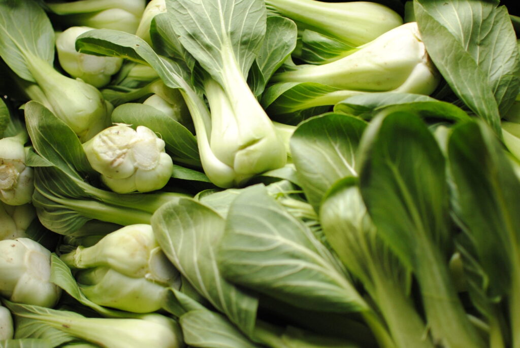 The Chinese translation of bok choy means “white vegetable,” but its different varieties display other colors. Baby bok choy (which is smaller and more tender) has green leaves, and Shanghai bok choy (which is larger) has pale green and yellow leaves. Bok choy is a gradient of texture and flavor, from the crisp and subtle stalk to the more flavorful leafy ends. It is mildly sweet with a subtle peppery undertone, and it’s packed with vitamin C, B vitamins, and calcium. Cook baby bok choy whole by steaming, boiling, or sautéing. Mature bok choy can be chopped or shredded to add to soups or stir-fries. Bok choy can also be used as an ingredient in Korean kimchi.