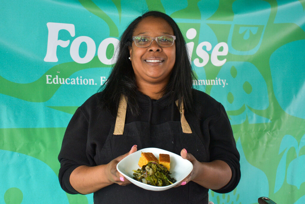 Collard Greens, Black Eyed Peas, and Sweet Potato Soup with Sweet Potato Cornbread from Wanda Blake, founder of Wanda’s Cooking. Through Wanda’s Cooking, Blake delivers culturally affirming meals that honor and celebrate the unique histories, traditions, and customs of each dish. Wanda’s Cooking is known for their housemade Pepper Chowchow, a Southern classic relish used as a condiment or as a cooking ingredient. This veg-based dish, which she demonstrated at the Foodwise Classroom, pays tribute to African American legacy foods of the South, with a zing of sweet Chowchow juice.