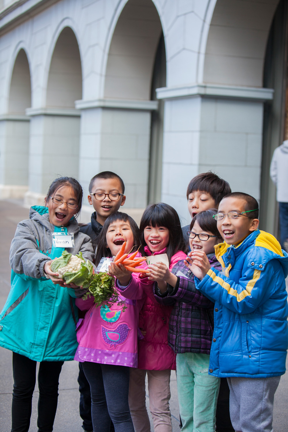 The Foodwise Kids field trip program uses the Ferry Plaza Farmers Market as a classroom to empower the next generation of healthy eaters. Elementary school students learn about California’s growing seasons and whet their appetites tasting produce that might be unfamiliar. They are urged to engage their five senses and keep an open mind as they encounter new foods (“Don’t ‘yuck’ my ‘yum’!”). The students then gather in teams to explore the market and select produce for a cooking class, meeting farmers along the way. Equipped with newfound knowledge and their fresh market finds, the children prepare a salad or snack to share with their classmates and teachers.